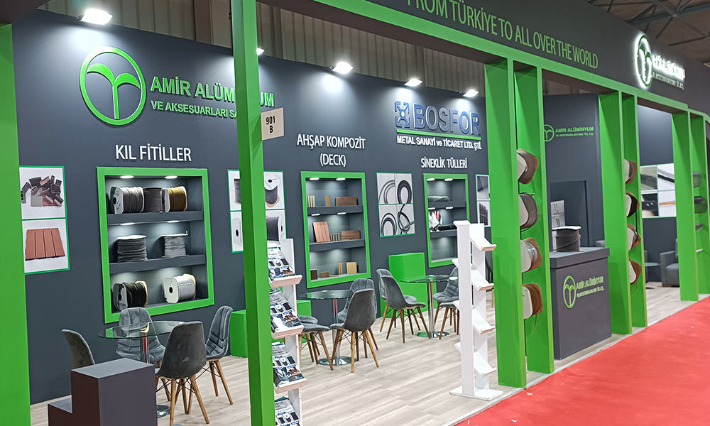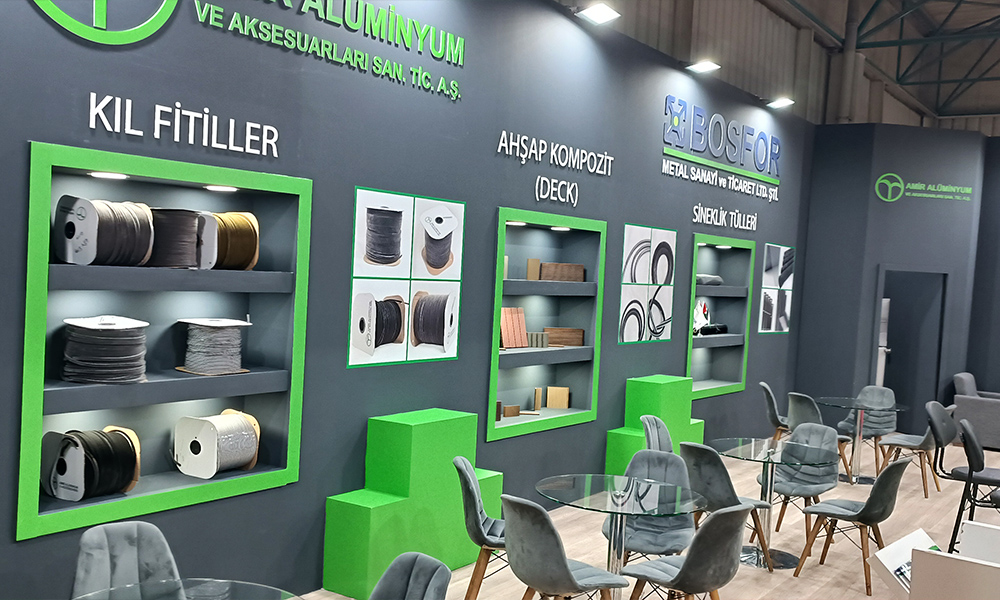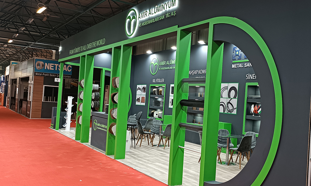 This design we made at the 2024 Tüyap İSTANBUL fairground is a customizable disposable wooden custom-made exhibition stand. White and black chipboard were selected as the material for the stand construction and the signage selection was applied as hidden LED illuminated foam letter cutting.